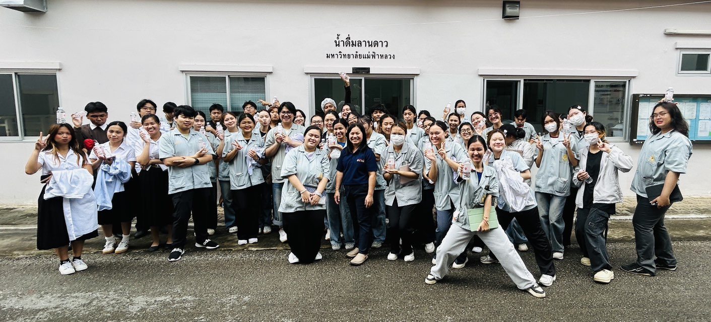 เมื่อวันศุกร์ที่ 19 กันยายน พ.ศ. 2568 นักศึกษาชั้นปีที่ 3 จากหลักสูตรนวัตกรรมวิทยาศาสตร์และเทคโนโลยีอาหาร สำนักวิชาอุตสาหกรรมเกษตร มหาวิทยาลัยแม่ฟ้าหลวง ได้เข้าศึกษาดูงาน ณ สายการผลิตน้ำดื่มบรรจุขวด “ลานดาว” ภายในมหาวิทยาลัยแม่ฟ้าหลวง อันเป็นส่วนหนึ่งของการเรียนการสอนในรายวิชา 1409302 การจัดการโรงงานและความปลอดภัยอาหาร