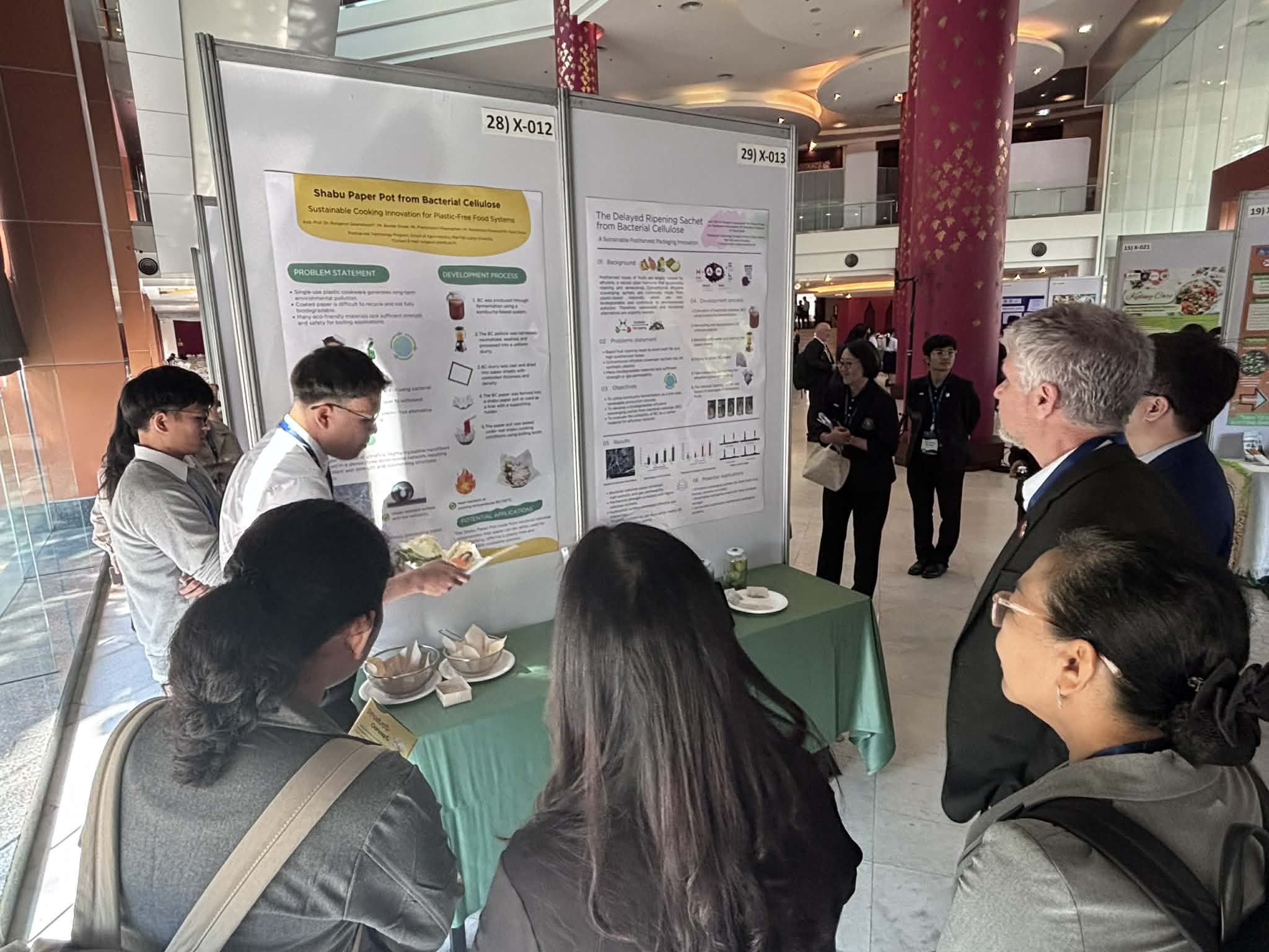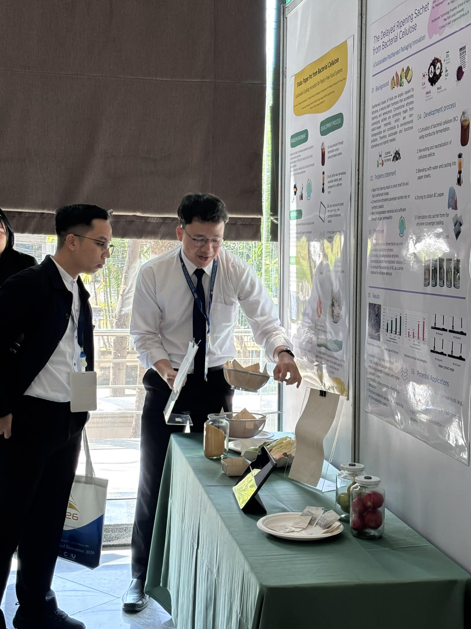 ทีมนักศึกษาดังกล่าวได้รับรางวัลจากการประกวดผลงานสิ่งประดิษฐ์ในงาน CNX Food and Applied Science Invention & Exhibition (CNX FINEX) ซึ่งเป็นส่วนหนึ่งของการประชุมวิชาการระดับนานาชาติ The 8th International Conference on Food and Applied Bioscience 2026 โดยได้รับรางวัลรวม 2 ผลงาน ได้แก่ ผลงาน “หม้อชาบูกระดาษจากแบคทีเรียเซลลูโลส” ได้รับรางวัลระดับเหรียญเงิน (Silver Medal) และผลงาน “ซองกระดาษชะลอการสุกของผลไม้จากแบคทีเรียเซลลูโลส” ได้รับรางวัลระดับเหรียญทองแดง (Bronze Medal) ในกิจกรรม CNX FINEX จัดขึ้นโดยคณะอุตสาหกรรมเกษตร มหาวิทยาลัยเชียงใหม่ ระหว่างวันที่ 5–6 กุมภาพันธ์ 2569 ณ โรงแรมดิเอ็มเพรส จังหวัดเชียงใหม่ โดยมีวัตถุประสงค์เพื่อเป็นเวทีแลกเปลี่ยนองค์ความรู้ทางวิชาการ การนำเสนอผลงานวิจัยและนวัตกรรม รวมถึงการส่งเสริมศักยภาพของนักศึกษา นักวิจัย และบุคลากรจากสถาบันการศึกษาทั้งในและต่างประเทศ